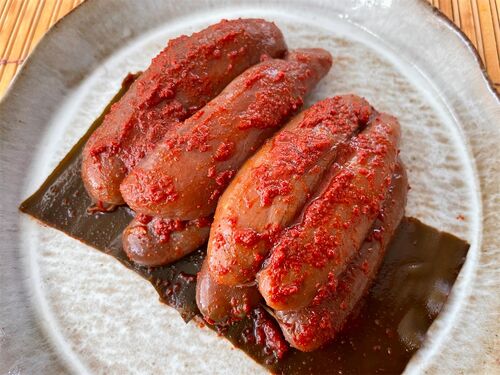 市場で助子を購入しました。2日間冷凍し、解凍してから1時間塩水に浸しました。針を使い血抜き。10%の塩を入れた酒に漬け一晩。 水にさらして、水分を拭き取り冷蔵で1時間程乾燥させます。 ここからは本漬け。かえしを作り沸騰直前に鰹節をいれ、韓国食材店…